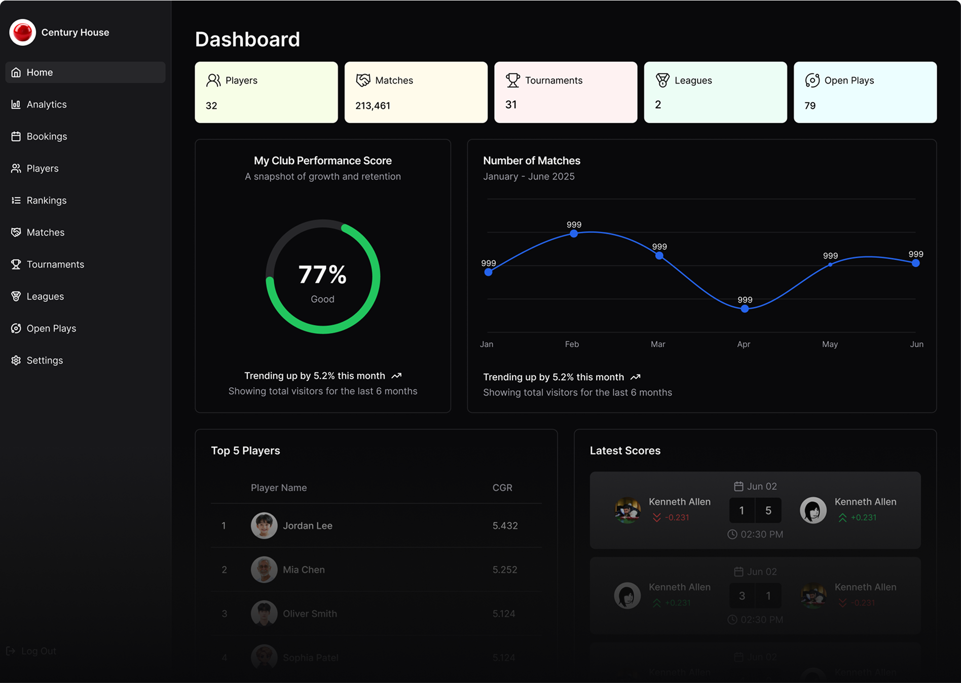 Want to know where you really stand? CuePal’s ranking system shows your exact position at your club, in your city, and on the global stage. As you log matches, your CuePal Global Rating (CGR) updates instantly — giving you a clear picture of your improvement and how you stack up against other players.
